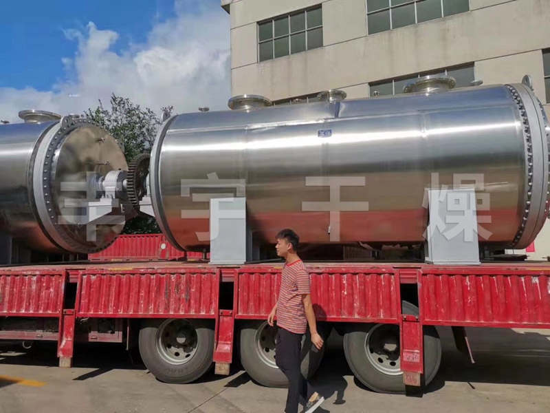 本機是一種新穎臥式間歇式真空干燥設備,濕物料經傳導蒸發(fā),帶有刮板攪拌器不斷清除熱面上的物料,并在容器內推移形成循環(huán)流,水份蒸發(fā)后由真空泵抽出。